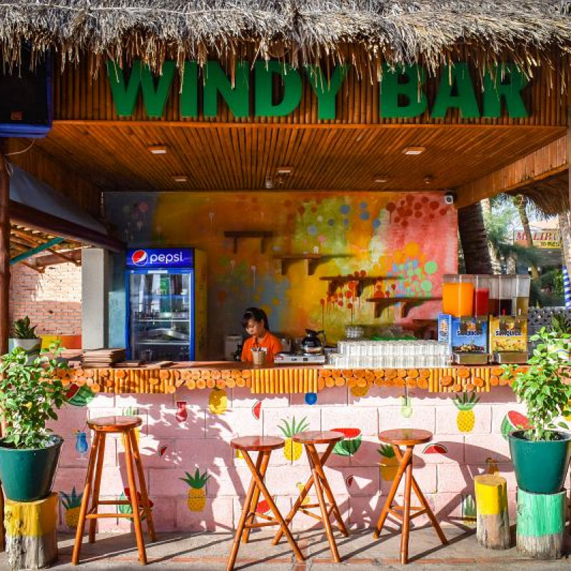 The resort has one large open-air restaurant, a beach bar and a swimming pool. Billiards are available in the lobby area. Our wide sandy beach is the site of regular volleyball and football games, plus a large number of water sport activities and our kite surfing school and equipment rentals.