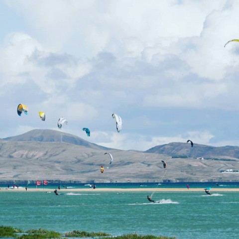 Fuerteventura is one of the Canary Islands just off the northwest coast of Africa. With it's chilled and laid back Spanish origin culture and the year-round wind, flat water, small waves and sun; it's a haven for any water-sports enthusiast. Kitesurfing and Windsurfing around Costa Calma is a lifestyle here. This location is perfect for beginners and advanced riders; travelling alone, in a group or with a family. The constant cross off-shore/off-shore winds coming over the dunes create amazing flat to a slightly choppy water condition, depending on where you are in the lagoon. All kitesurfing schools and centres provide all needed facilities and safety boat cover so that you will be in good hands. For a non-windy day (and there are not many) you can trek up one of the nearby volcanoes or go on dune buggy excursions around the island from Corralejo or take a ferry trip to Lanzarote (30 min away). Additionally, sailing, surfing, SUP, snorkelling and kayaking are available for water-sports lovers. The closest entertainment can be found in the Costa Calma, the main place to meet and enjoy a few drinks and snacks is The Fuerte Action Bar. For more nightlife and evening adventures, head to Corralejo (1h away).