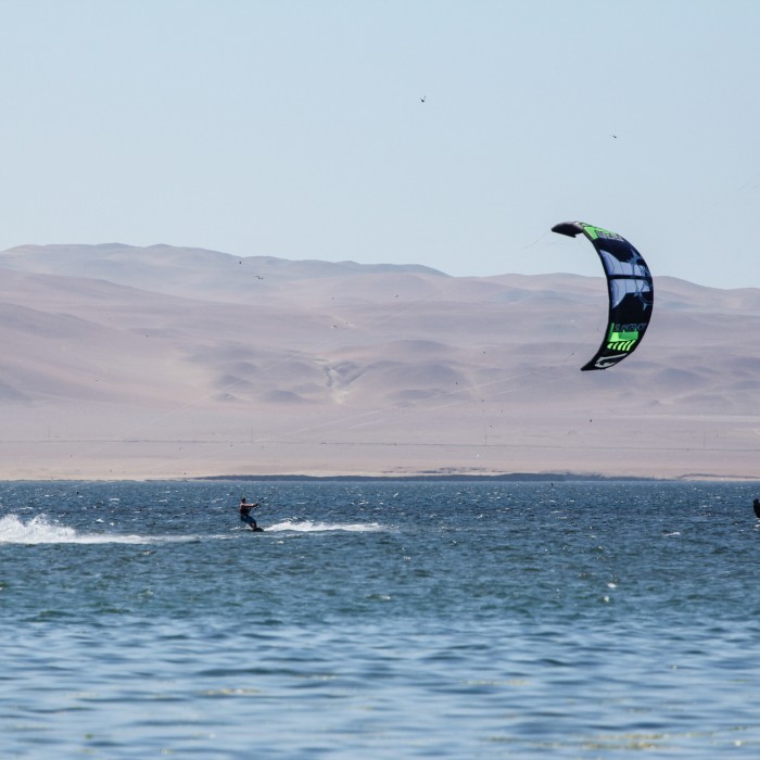 The bay starts as a shallow sandy bottom beach for around 100m before it opens into a deep water bay excellent for hydrofoiling. The flat and shallow beach area is super safe for beginners, and the shape of the bay provides security for the less advanced riders as you will end up at the beach no matter what happened. Due to the natural formation of the beach and the cross-shore wind direction, the water is flatter closer to the beach, and with the deeper water comes the slight chop and you will find some small kickers in the middle of the bay. The flat water in the bay is perfect for the freestyle lovers, and you can even find a perfectly flat speed strip in one part of the bay. If you want to explore waves, then some nearby locations of Playon & Zarate can make a perfect day trip in a search for cleanest waves in the area. The kite schools often organise downwinders to Laguna Grande and Pisco. Apart from kitesurfing, there is also a long list of other activities that you can occupy yourself with while you are here. Join the tours to explore the nature reserve and the famous Islas Ballestas to see the flamingos, sea lions, penguins, pelicans and dolphins in their natural habitat. Trip to Huacaschina dunes to visit desert oasis or go for dune buggy and sand-boarding adventure. Also, visit a nearby town of Ica for their well knows Pisco Sours (Peru’s national drink) and of course wine tours. AMENITIES: Kite School, Gear Rental, Beach Assistance, Gear Storage, Kite/Gear Repair, Parking, Accommodation, Food Shop.